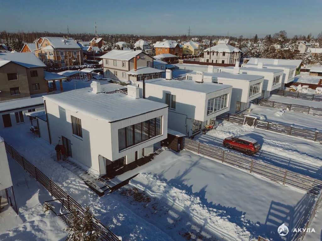 Дом из газоблоков, монолитный фундамент, кровля плоская утепленная с гидроизоляцией, витражные окна в пол "Pexay".