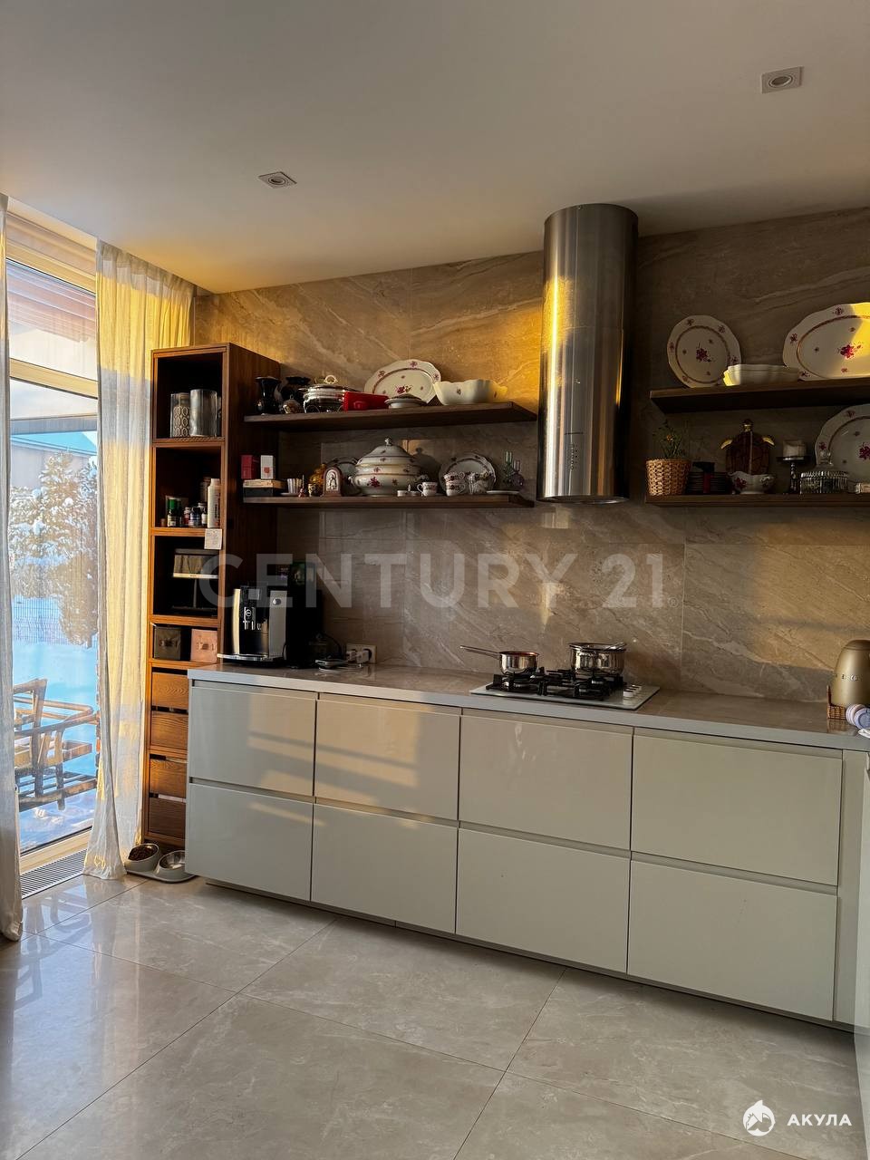 Кухня-гостиная большая, оборудованная всей необходимой техникой (вытяжка, газовая плита, электрическая духовка, посудомоечная машина, кондиционер) с выходом на комфортабельную террасу.