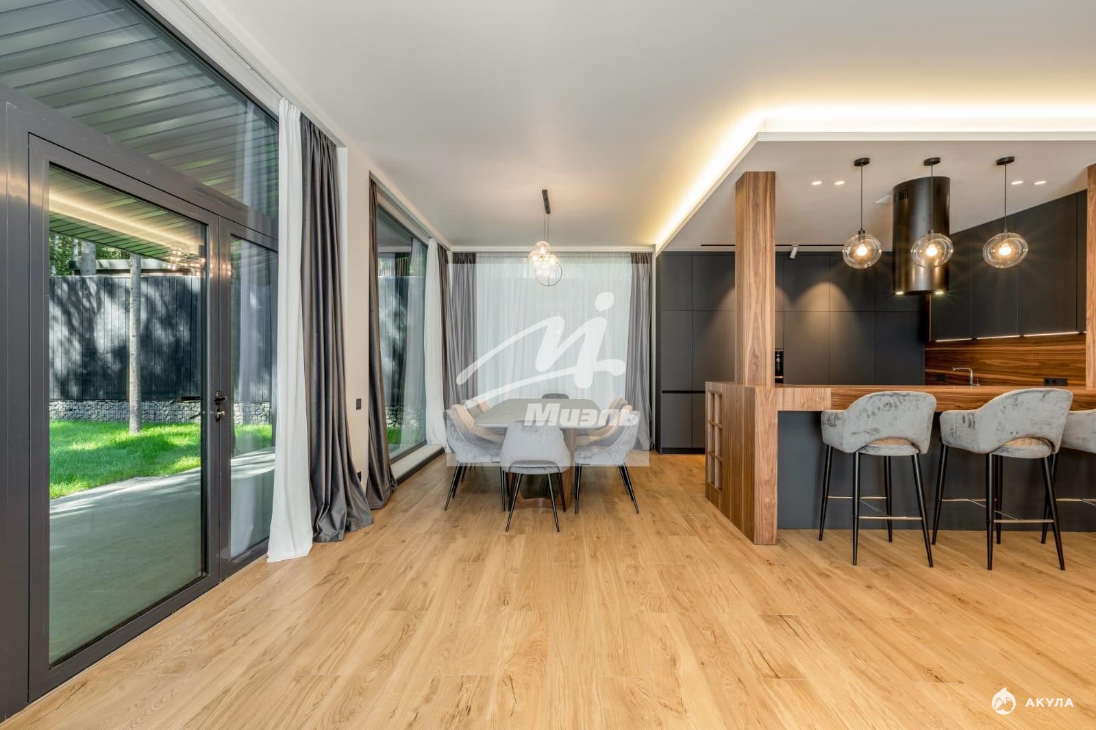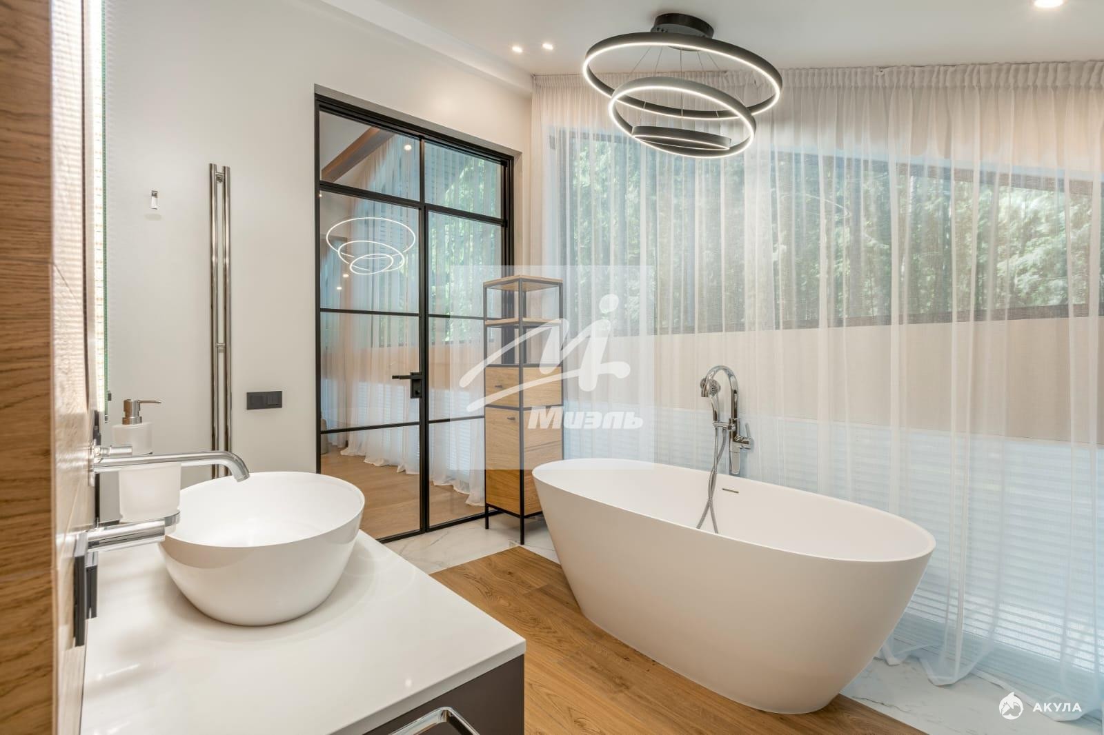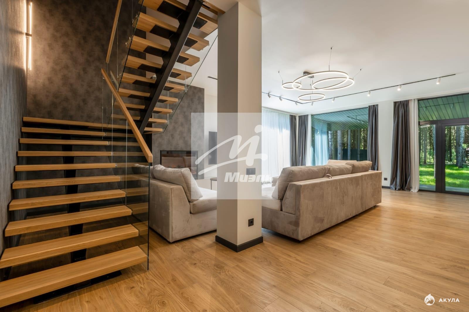 Отделка выполнена премиальными материалами. Центральная система вентиляции и кондиционирования. Теплые полы уложены на 1ом и 2ом этажах.