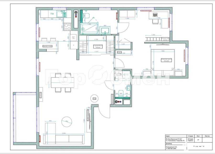 - Площадь кухни